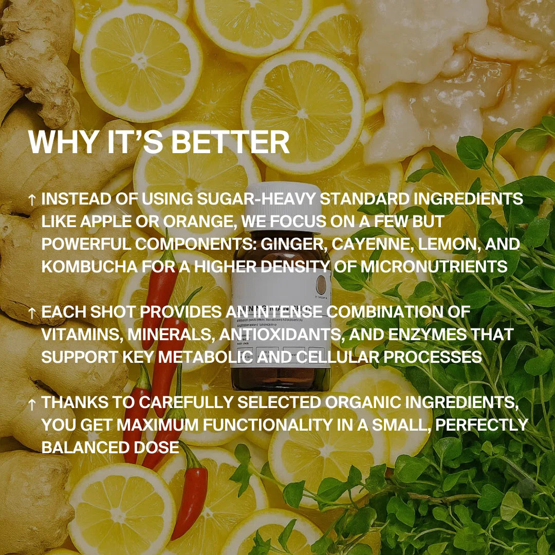 | Wenige, hochwertige Zutaten (Ingwer, Zitrone, Cayenne) | ||