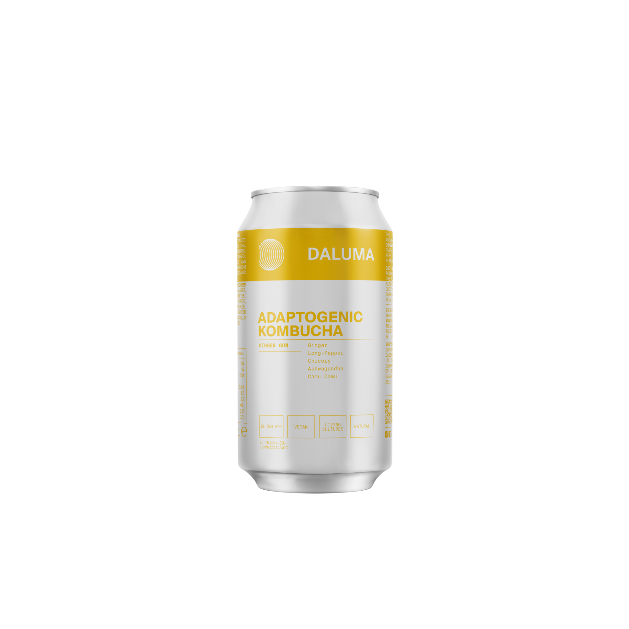 GINGER GUN KOMBUCHA: fermentierter tee-kräuter-aufguss (wasser, zucker*, grüner tee*, jasmin-blüten*, schwarzer tee*,| kombuchakultur* (hefe*- und bakterienkulturen), ingwersaft* 1%, zitronensaft*, chicoree-wurzel getrocknet*, ashwaghanda* pulver, camu camu pulver schwarzer*- und langer-pfeffer-pulver*, bacillus subtilis, pilz extrakt (glykolipide), kohlensaure.