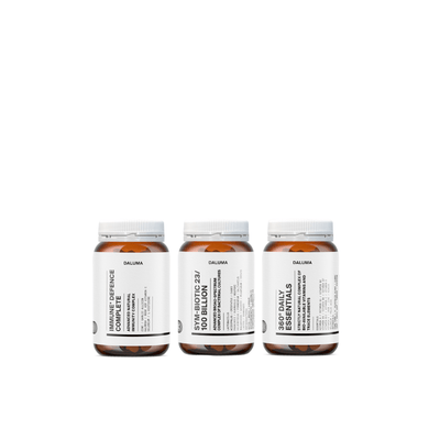 Eine ganzheitliche Kombinationsroutine aus probiotischer Hautpflege und Nahrungsergänzung unterstützt dein Hautmikrobiom und die Hautbarriere für eine langfristig reine, strahlende Haut.
