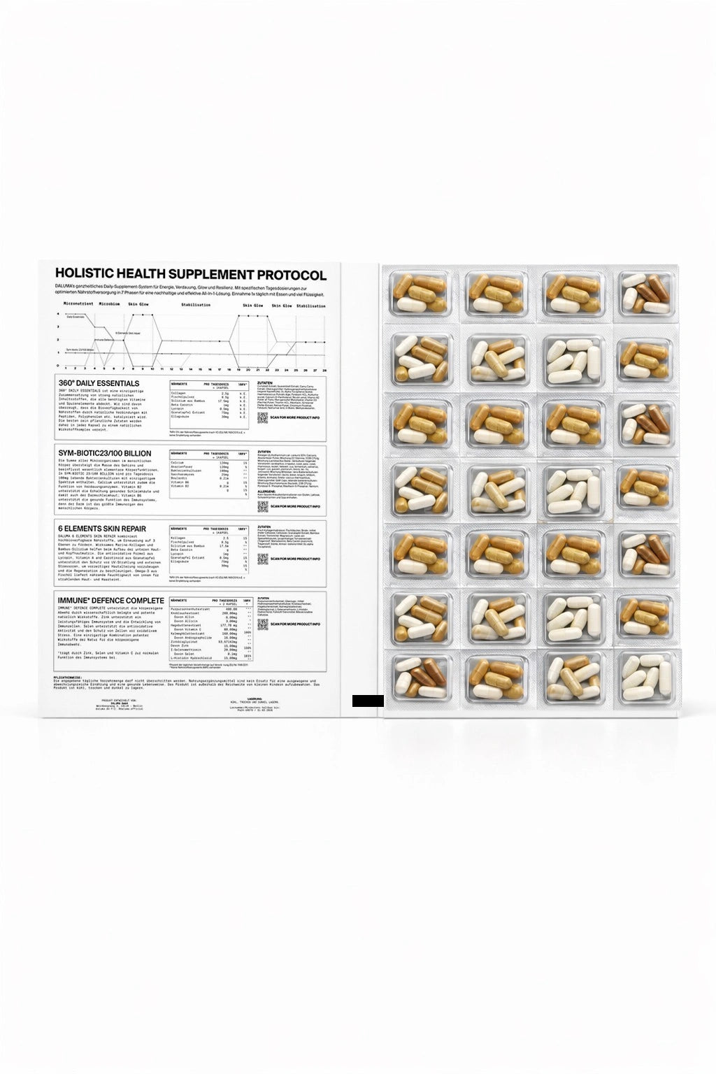 Ein Daily Pack, das deine Supplement Routine spürbar einfacher macht: 1 Griff, 1 Tagesportion für 28 Tage. Das DALUMA Daily Protocol kombiniert vier sorgfältig formulierte Supplements in einem klaren System mit 7 Phasen. Vordosiert, übersichtlich, reisefit.
